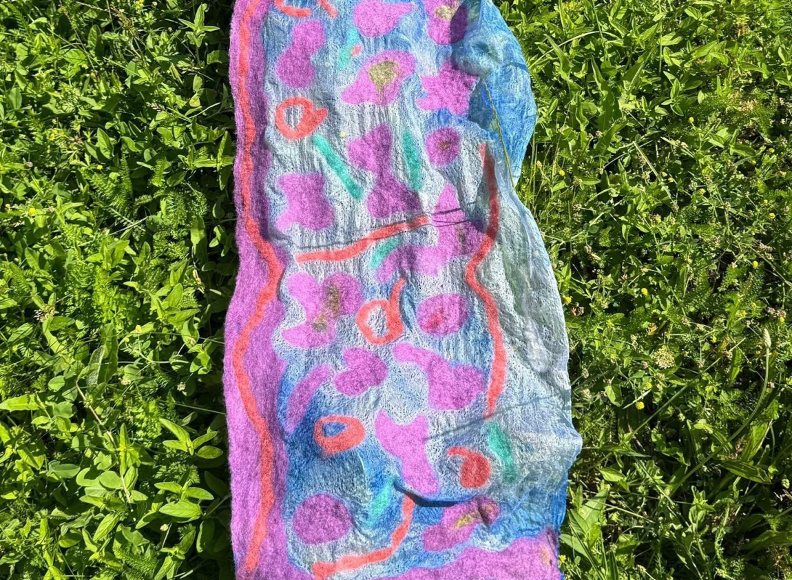 Feutrage nuno, une technique qui marie la fibre de laine et le tissu de soie. Nous réaliserons une belle étole légère et colorée.